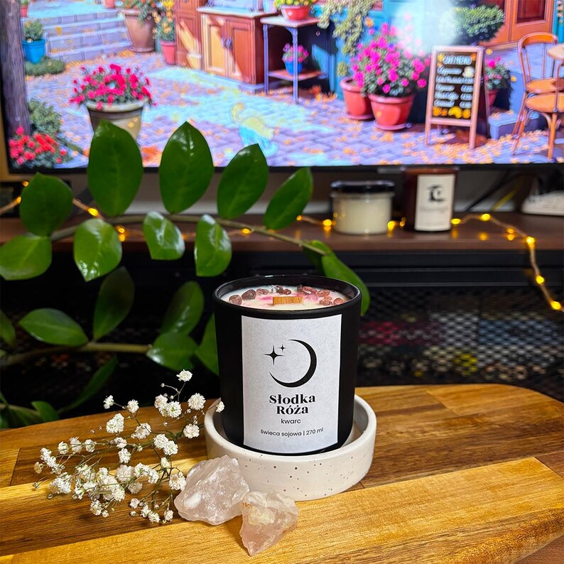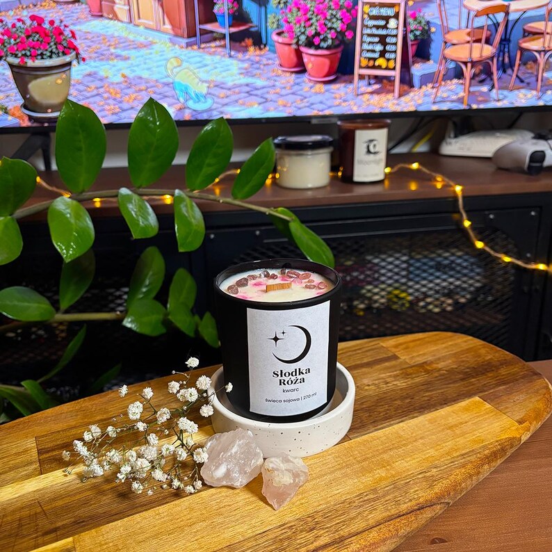 Dla miłośników róż, krystalicznej energii i pięknych, estetycznych detali — świeca, która robi klimat i duszę wnętrza.